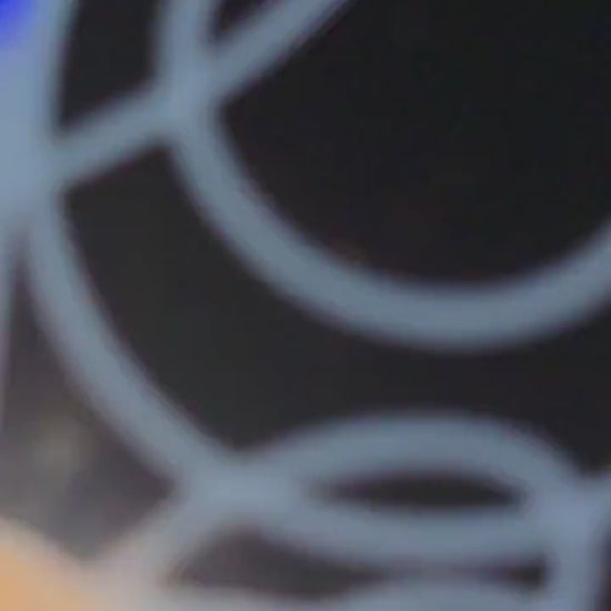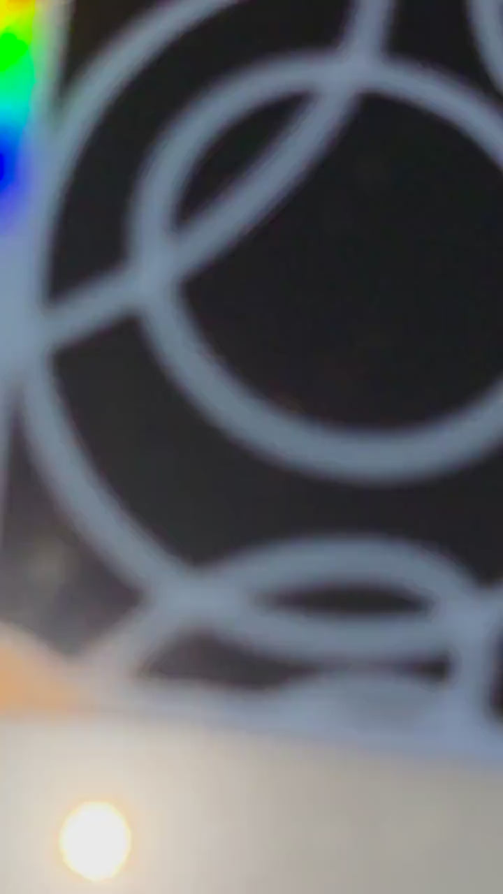 For a dazzling effect, your design is printed over a shiny metallic holographic film that reflects light in rainbow tones. This backing adds depth and movement to your artwork, making it truly eye-catching.