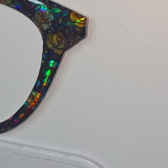 Holographic Blue Rose Stained Glass frame topper to fit Pair frames +