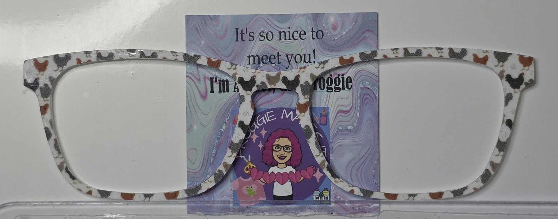Each topper is crafted with a lightly flexible clear acrylic frame and sealed with resin or UV-resistant vinyl, as selected in the "Personalization" section. Strong magnets are pre-installed to align seamlessly with your Pair Eyewear frame.