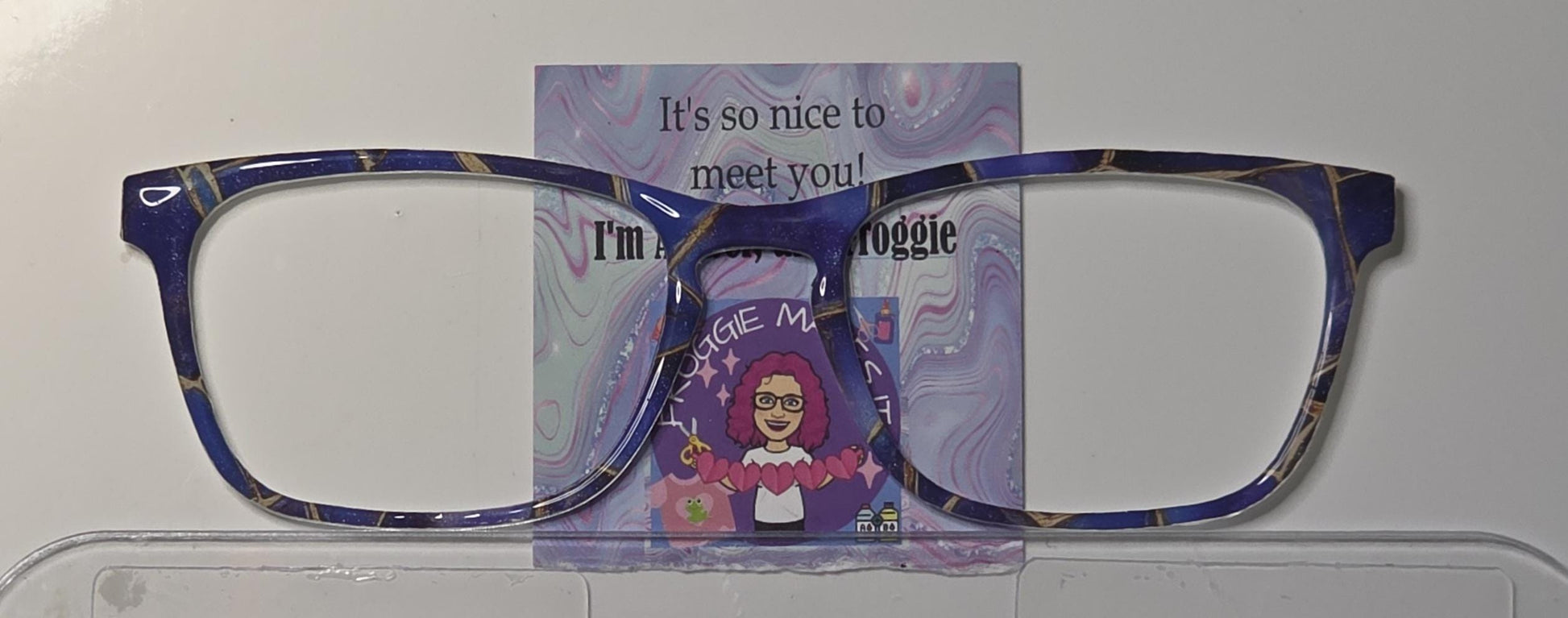 Each topper is crafted with a lightly flexible clear acrylic frame and sealed with resin or UV-resistant vinyl, as selected in the "Personalization" section. Strong magnets are pre-installed to align seamlessly with your Pair Eyewear frame.