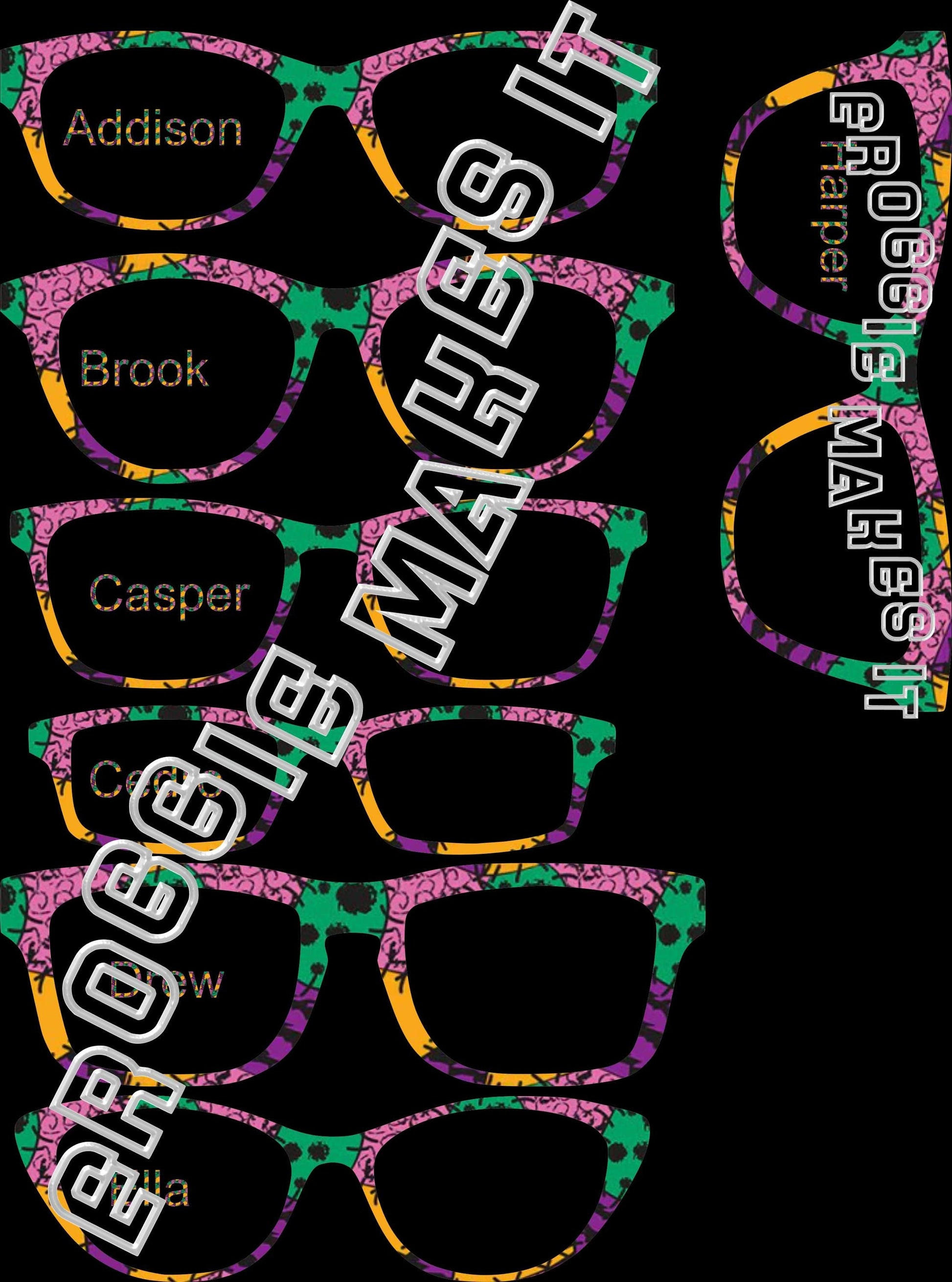 Each topper is crafted with a lightly flexible clear acrylic frame and sealed with resin or UV-resistant vinyl, as selected in the "Personalization" section. Strong magnets are pre-installed to align seamlessly with your Pair Eyewear frame.
