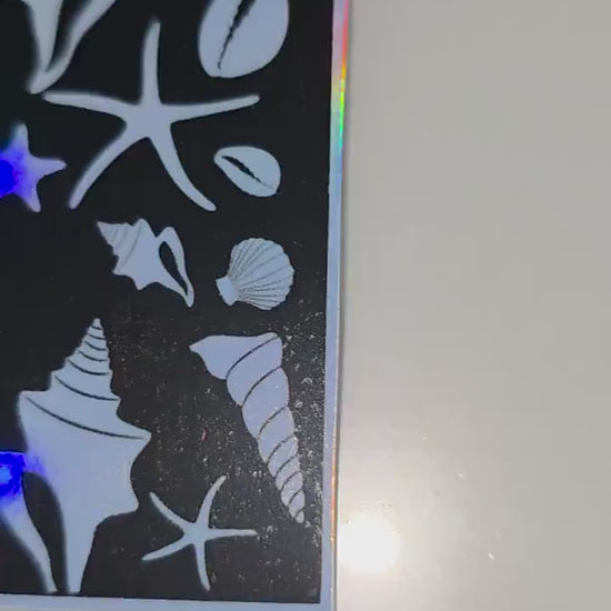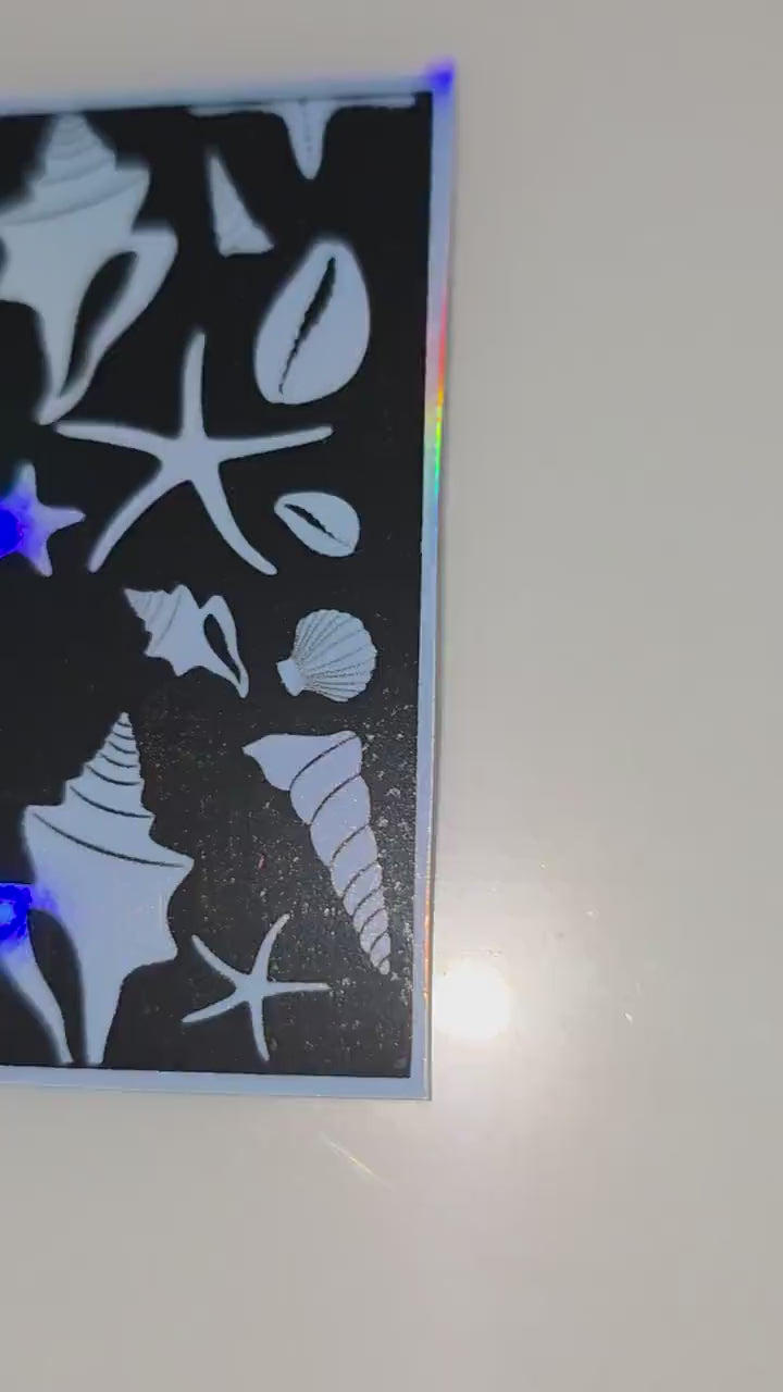 For a dazzling effect, your design is printed over a shiny metallic holographic film that reflects light in rainbow tones. This backing adds depth and movement to your artwork, making it truly eye-catching.