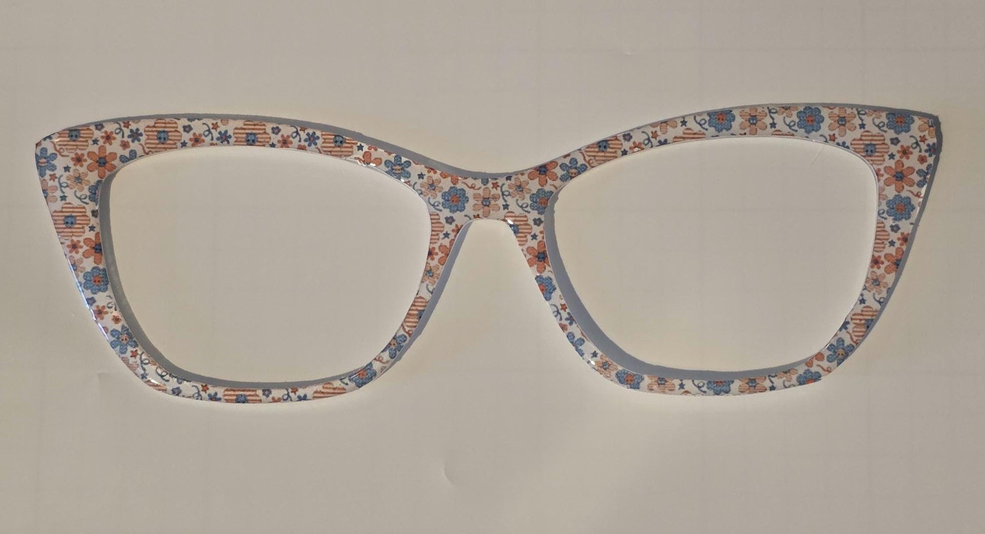 Opaque Patriotic Flowers frame topper to fit Pair frames