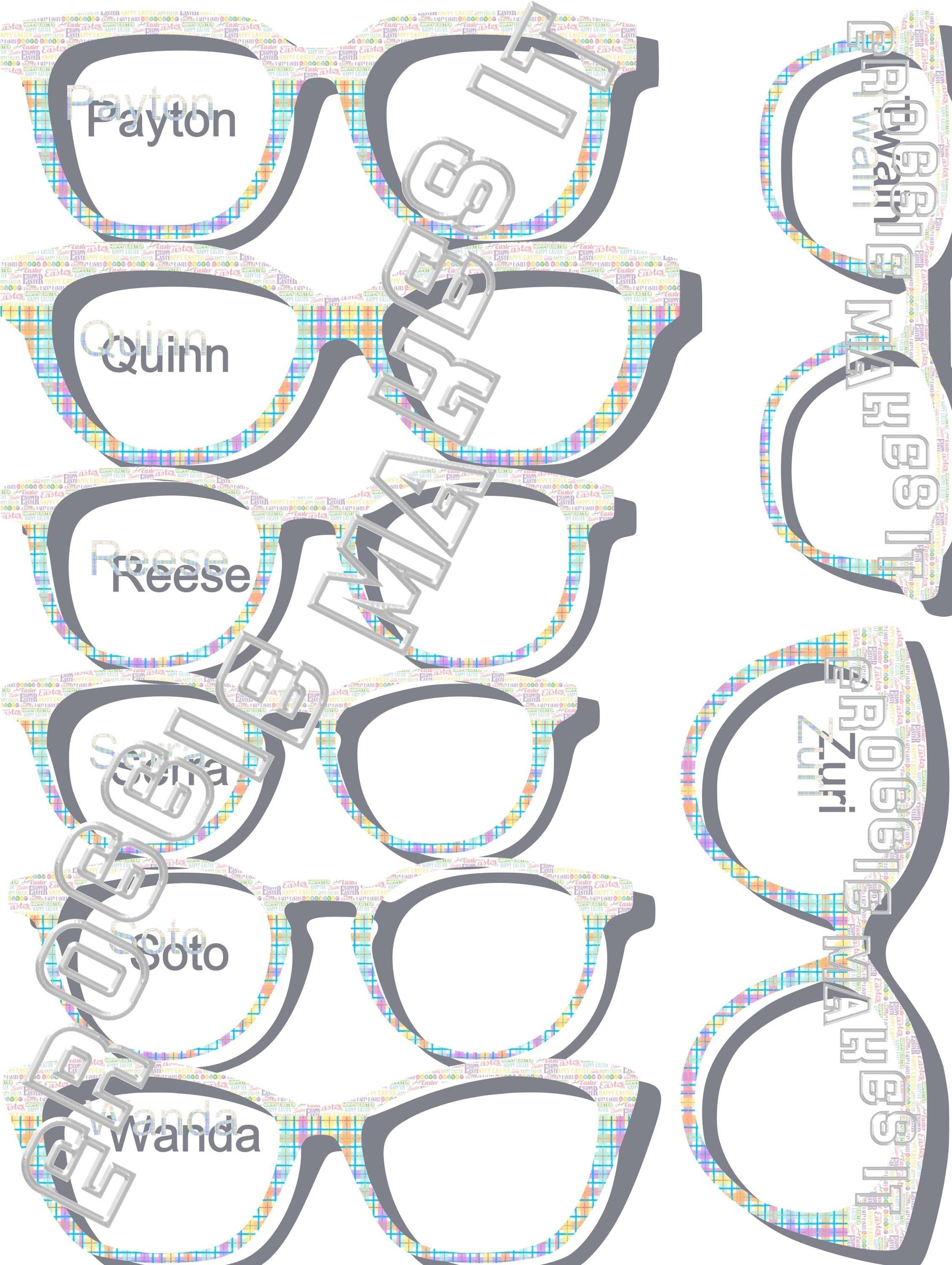 Translucent Happy Easter over Pastel Rainbow Plaid frame topper compatible with Pair frames