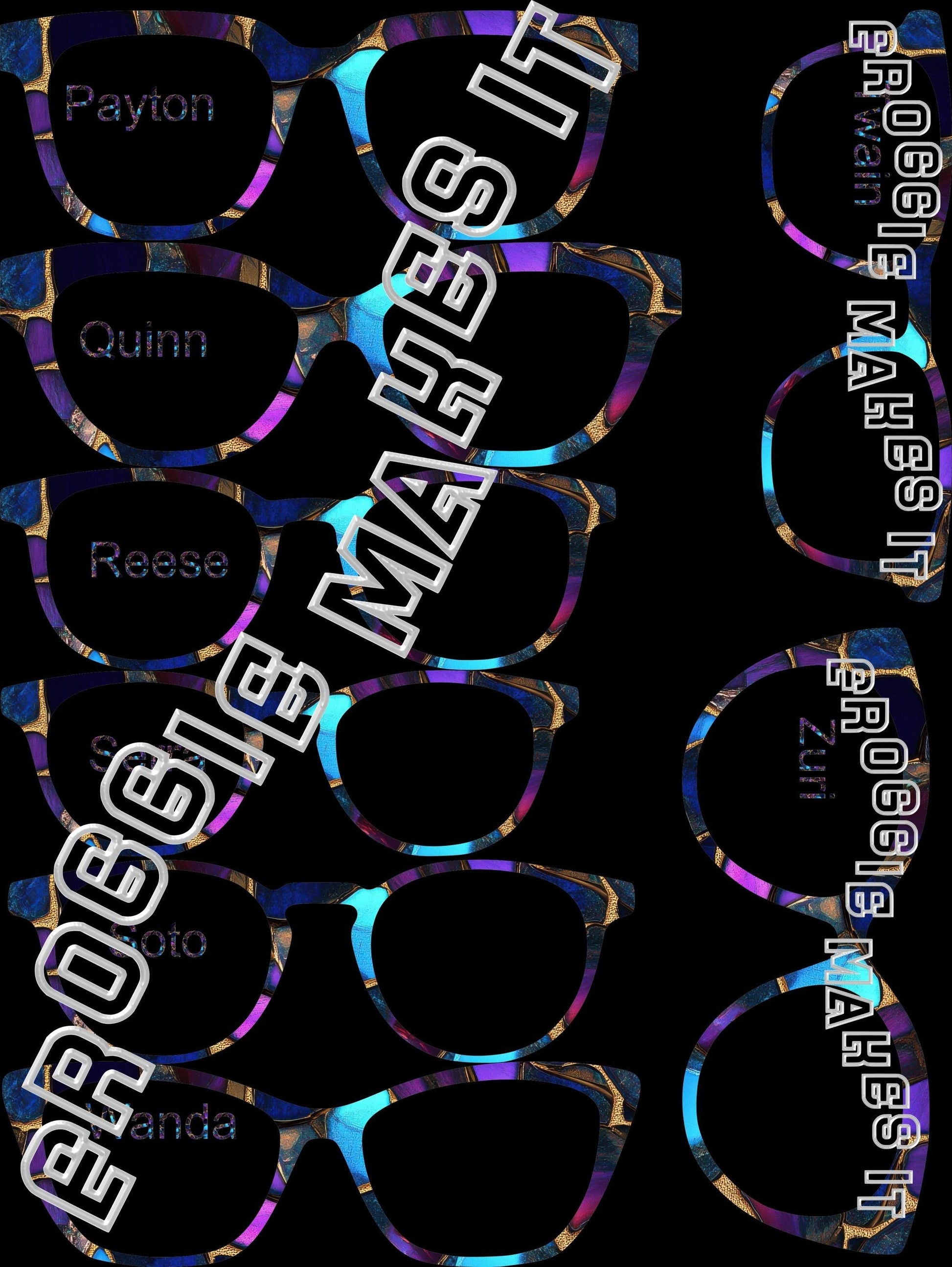 Each topper is sealed with a light coat of resin or UV-resistant vinyl, as selected in the "Personalization" section. Strong magnets are pre-installed to align perfectly with your Pair Eyewear frame.