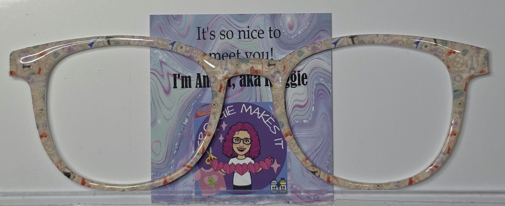 Each topper is sealed with a light coat of resin or UV-resistant vinyl, as selected in the "Personalization" section. Strong magnets are pre-installed to align perfectly with your Pair Eyewear frame.