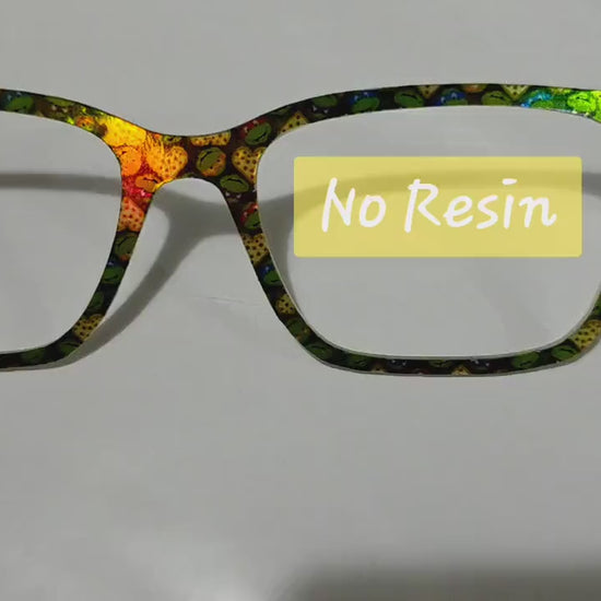 Each topper is sealed with a light coat of resin or UV-resistant vinyl, as selected in the "Personalization" section. Strong magnets are pre-installed to align perfectly with your Pair Eyewear frame.
